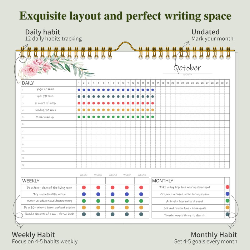 - Plan Your Way—No Fixed Dates:Life doesn’t follow a strict schedule, so why should your planner This undated habit calendar lets you start anytime—no wasted pages, no pressure Perfect as a weekly monthly daily planner, it gives you total flexibility to plan how you want Whether you need a fresh start or just want to stay on track, this planner adjusts to YOUR life, not the other way around
