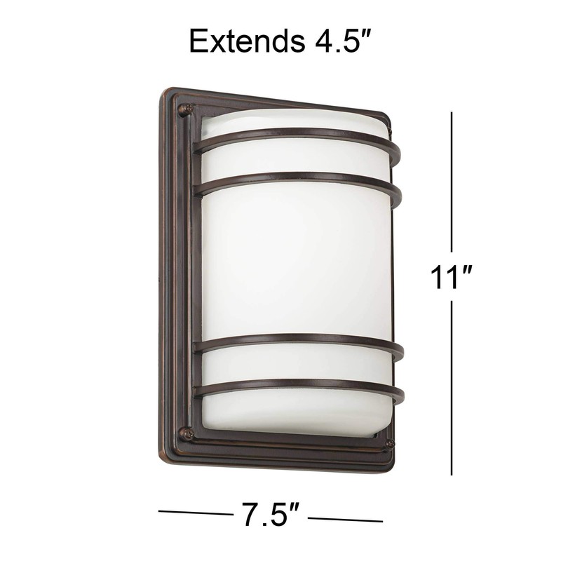 Habitat Modern Contemporary Outdoor Wall Light Fixture Sconce Rubbed Bronze 11" Opal Glass Sconce for Exterior House Porch Patio Outside Deck Garage Yard Front Door Garden Home - John Timberland
