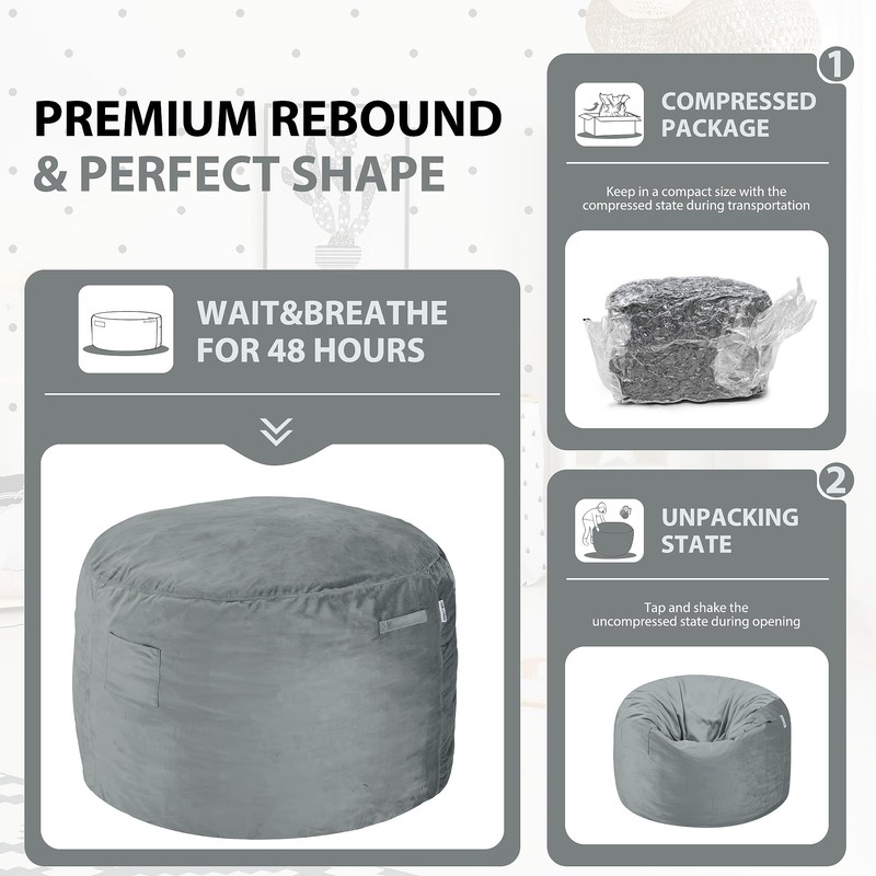 - COMFORTABLE - The premium super soft velvet cover for our giant bean bag chair is skin-friendly which will bring you the ultimate silky soft touch feeling when you sit.