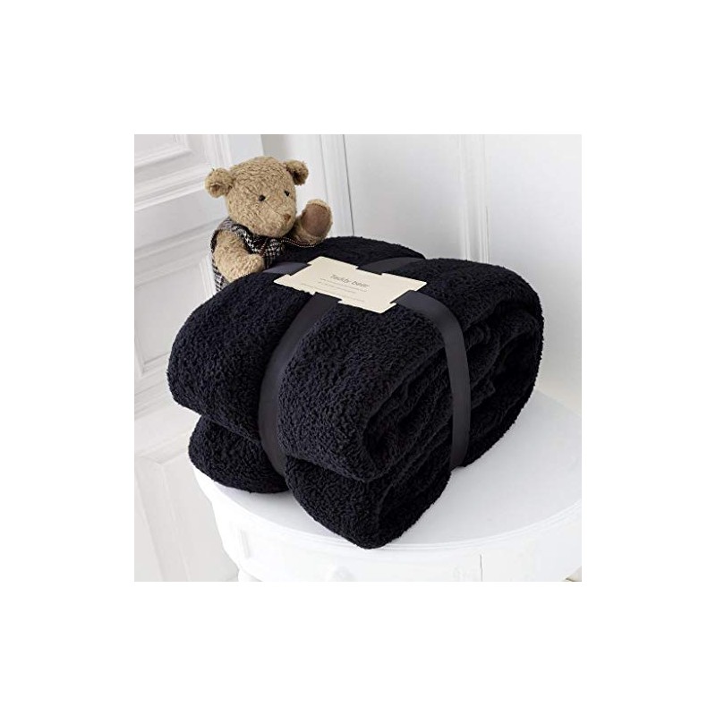 Hachette Teddy Fleece Throw Blanket Soft Warm Throw Over Sofa Bed Travel Bedspread Blanket (Black, Double - 150 x 200 cm)