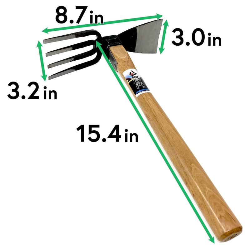 HACHIEMON Japanese Craftsmanship Garden Hand Tool Hoe and Cultivator Hand Tiller - Sturdy and Sharp