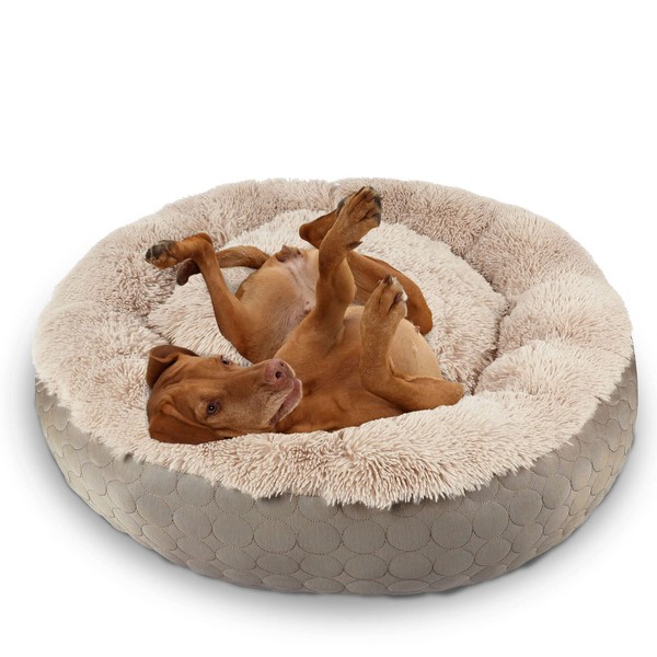 HACHIKITTY Dog Donut Round Calming Bed, Fluffy Dog Bed for Medium Large Dogs, Cooling Warming Soft Dog Cushion Bed, Double Sided Available Dog Bed with Warm & Cool Sides(30"x30"x9", Taupe)