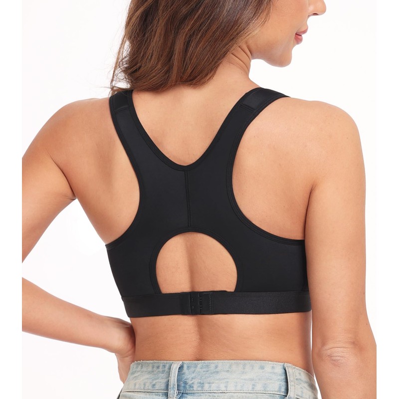 HACI Front Closure Non Padded Post Surgical Bra Wirefree Sport Racerback Posture Adjustable Wide Strap Bra(Black,32B/C)