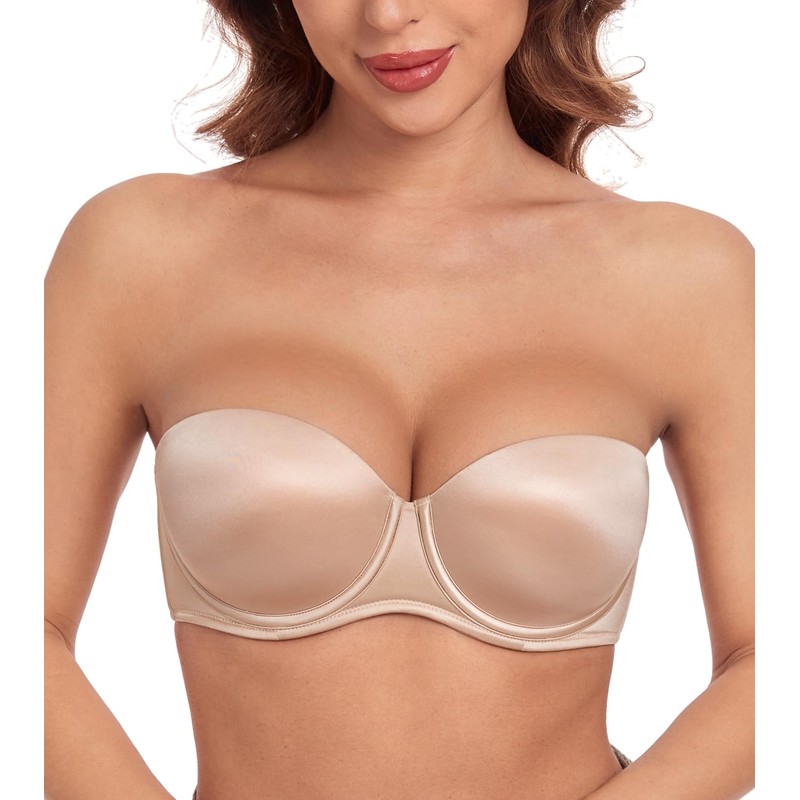 - Push Up Bra: Smooth thick padded Cup, provide great push up support, gather the breast, create a cleavage enhanced effect. Add 1.5 cup size at least! Help to make a fuller and uplift shape. If you have any questions, we are always in there for service. The first time you wear a strapless bra, maybe it will be a little tight. Don't worry, it is normal. After wearing it for several times, it will be better.