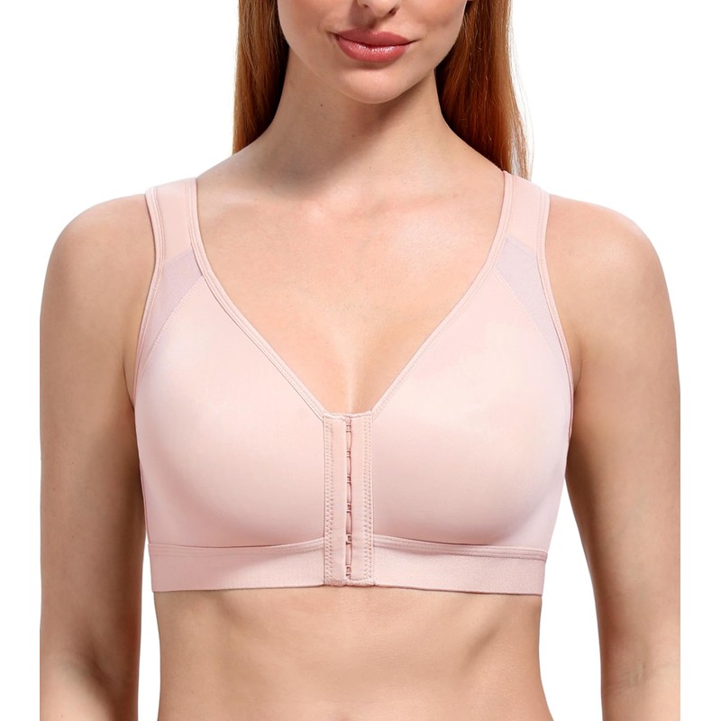 HACI Women's Front Closure Posture Bra Full Coverage Back Support Wireless Comfy Unpadded(Pink,36B)