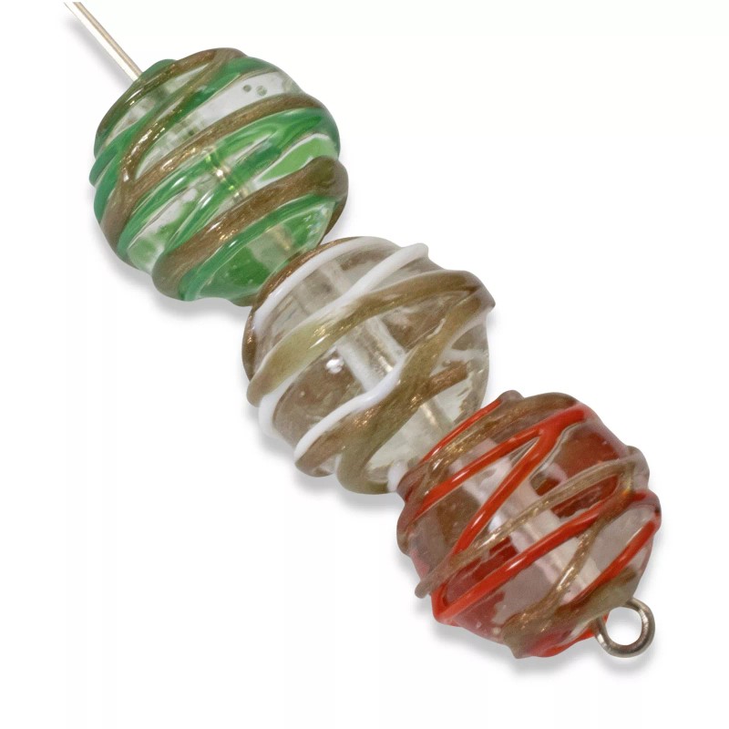 VERSATILE USAGE: These round lampwork beads can be used in various ways, including creating festive jewelry, holiday decorations, and unique craft projects.