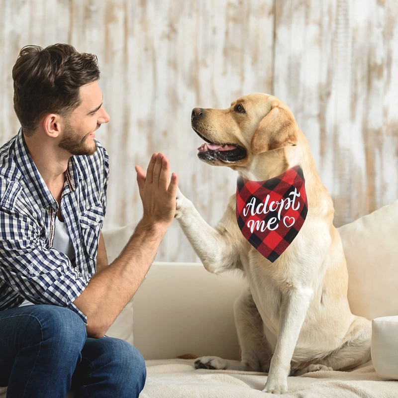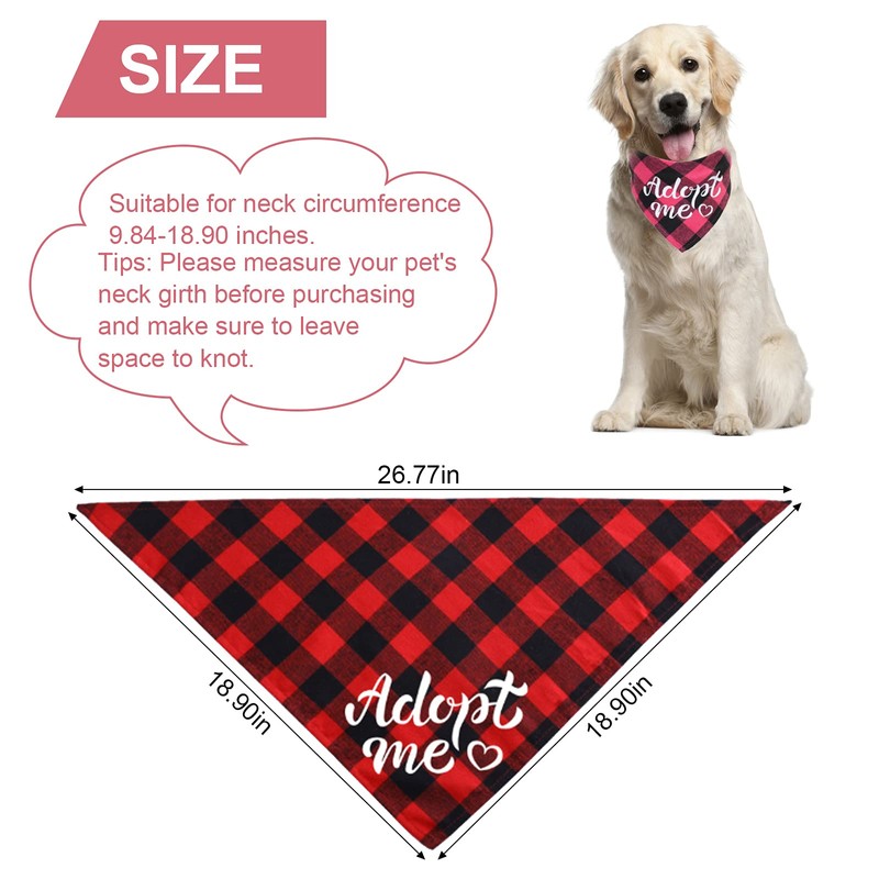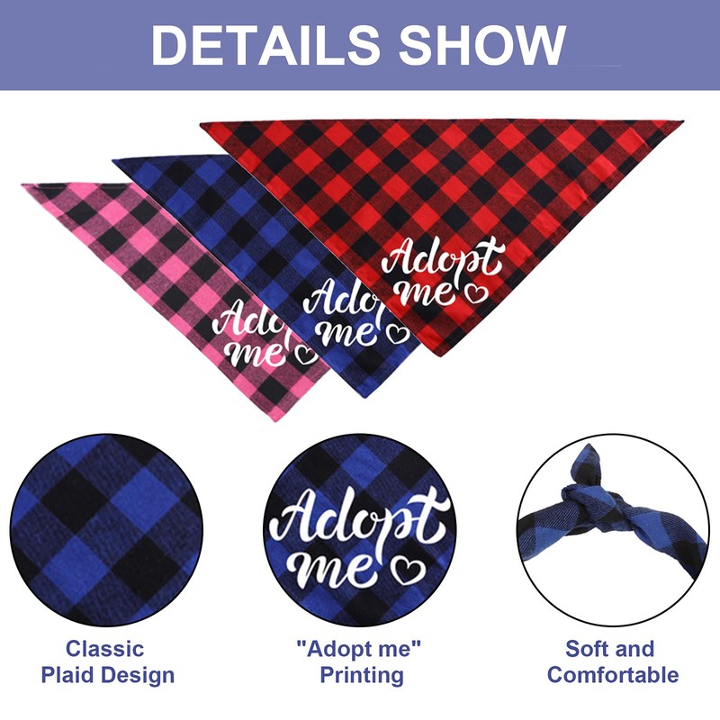 - UNIQUE STYLE -- The bandanas are designed with classical plaid style and have cute "Adopt me" printing, which can make your pet look more attractive and cute.
