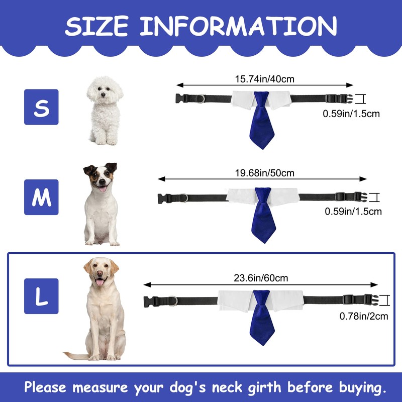 - REMOVABLE TIE -- The tuxedo tie is removable, you can separate the tie and collar to wash, which is convenient for you to wash the dog neck tie.