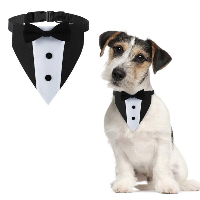 HACRAHO Formal Dog Tuxedo Wedding Bandana, 1 Piece, Adjustable Dog Bandana with Release Buckle, Dog Bow Tie, Collar, Bandana for Small Medium Large Dogs, Pet, S