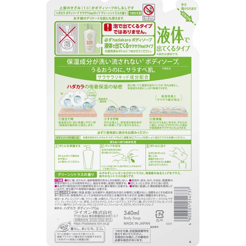 Hadakara Body Soap, Smooth Feel Type, Green Citrus Scent, Refill, 11.5 fl oz (340 ml)