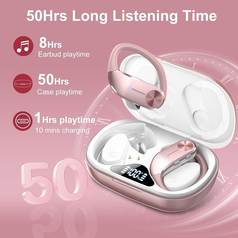- 68 HOURS OF LISTENING TIME AND 800 mAH CHARGING CASE: With up to 8 hours of listening time per headphone and an 800 mAH charging case for up to 58 hours of music listening, the Q28S wireless headphones feature a dual-LED display that shows battery status in real time, making it easy to monitor the remaining charge. It supports Type-C fast charging.