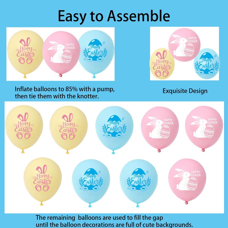 - 【HADCKJA Satisfactory Customer Service】: Easy to Assemble You create your Easter balloons kit quickly and easily. The Easter party decorations are simple to inflate and tie, so you can have your Easter party decorations set in no time. We are committed to providing our customers with the possible shopping experience. If you have any buying problems, please feel free to contact our service team! So what are you waiting for?
