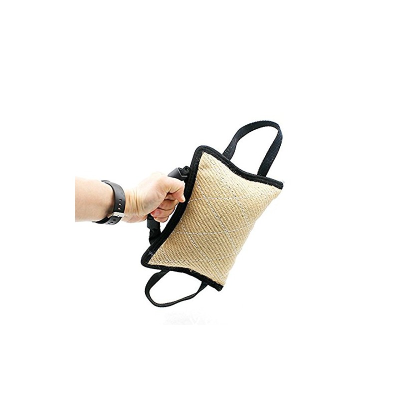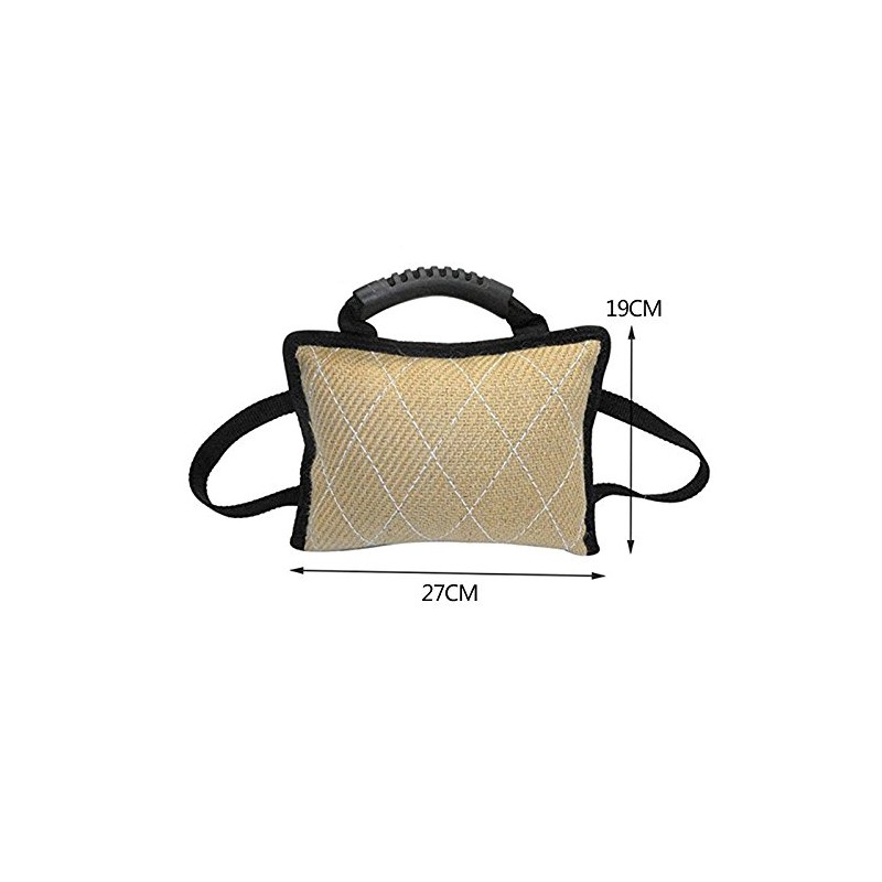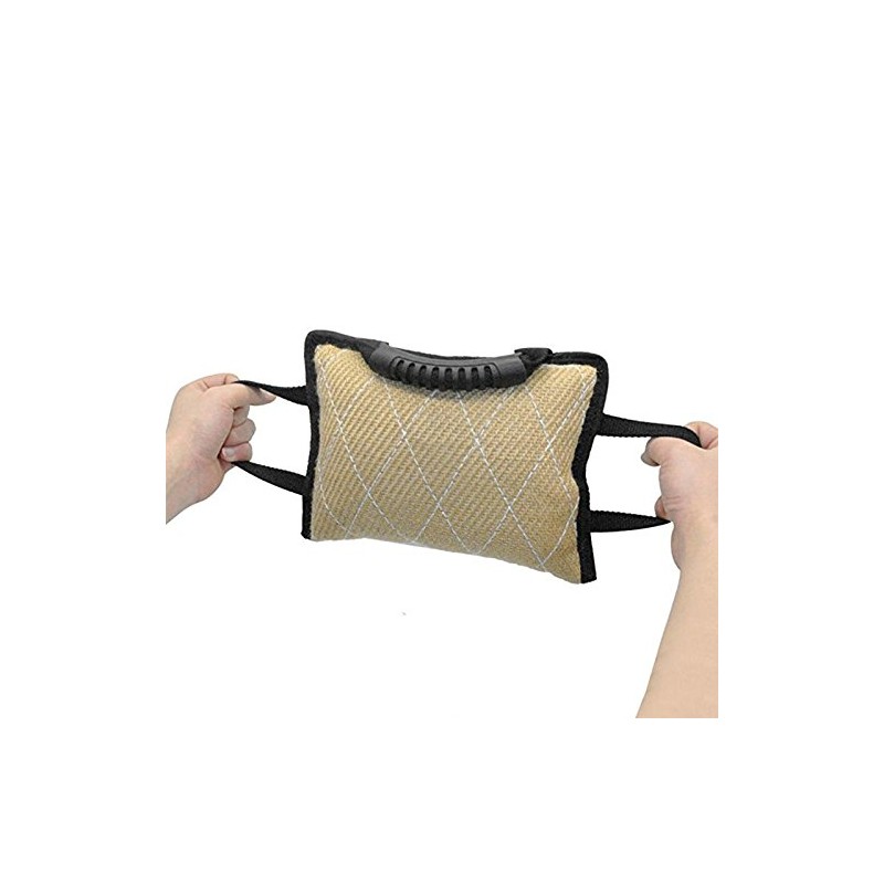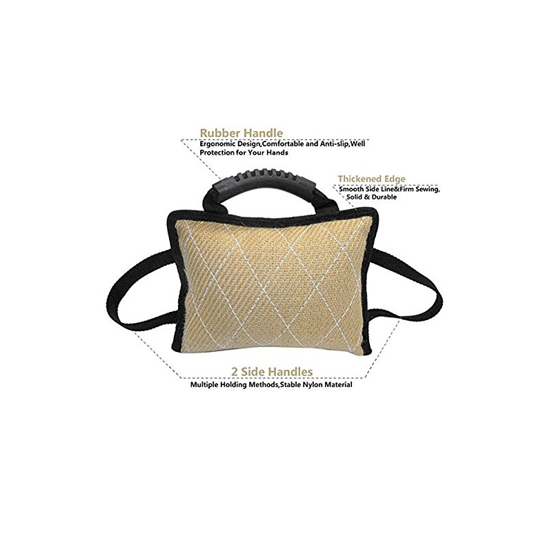 HADIIH Durable Dog Training Bite Tug Toy with 3 Handles Linen Bite Cushion
