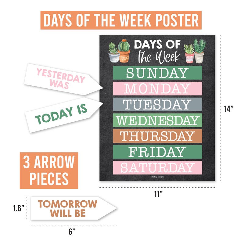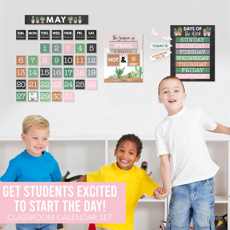- Get Kids Excited About Their Day; You'll receive 98 individual calendar pieces, 1 - 8x10 weather chart, and 1 - 11x14 days of the week poster; Inspire a love for learning with this classroom calendar for teachers elementary teacher calendar for classroom