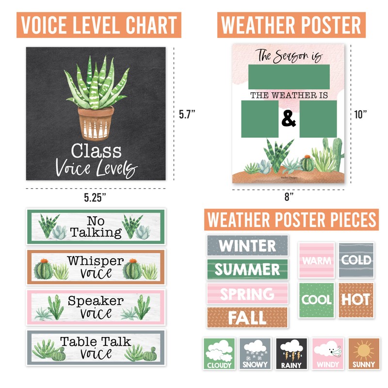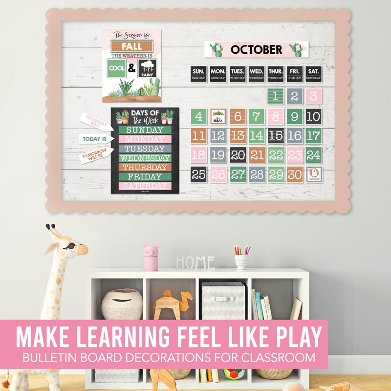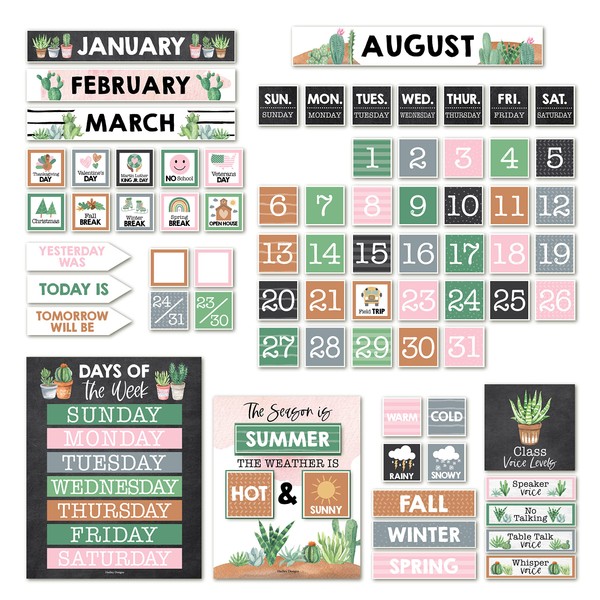 Hadley Designs Classroom Calendar Set Bulletin Board – Cactus Calendar For Classroom Must Haves, Kindergarten & Preschool Calendar And Weather Chart For Classroom, Calendar Bulletin Board Set