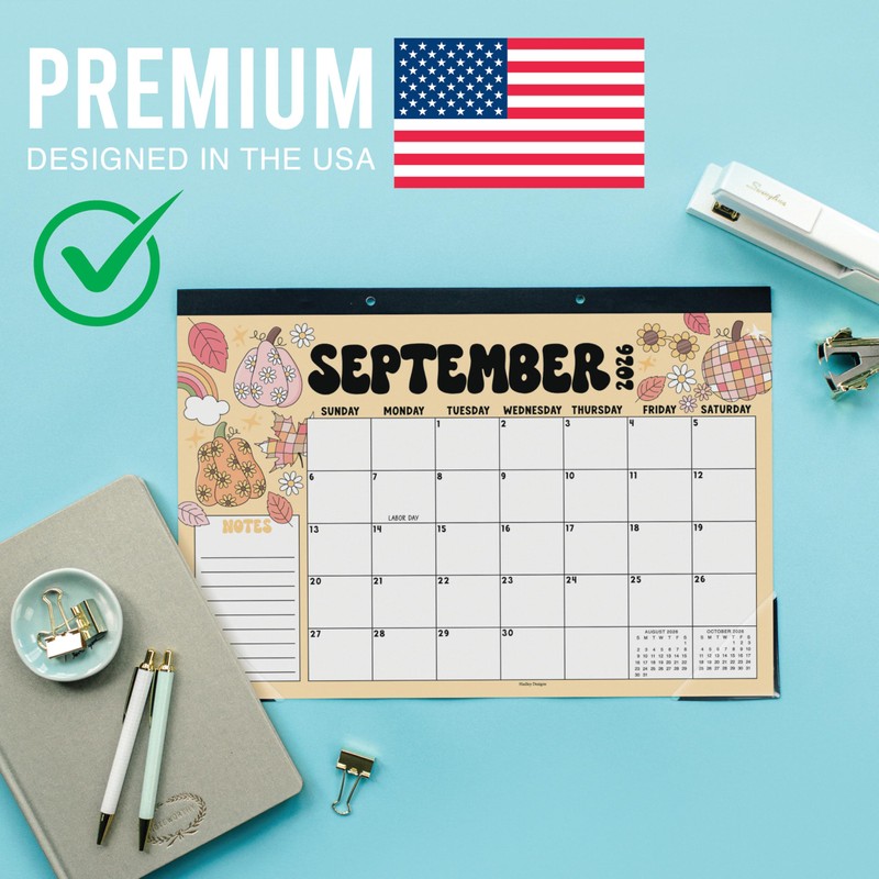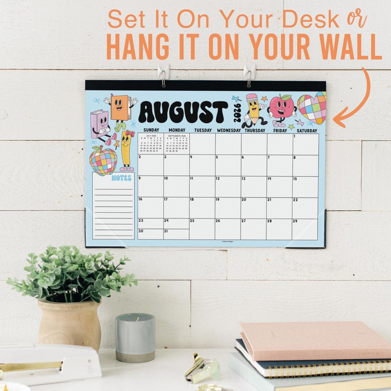 Hadley Designs Large Desk Calendar 2026-2027 - Monthly Teacher Desk Calendars 2026-2027 Desktop Calendar 2026, 18 Month 2026 Desktop Calendars, Cute Retro Classroom Decor Teacher Must Haves