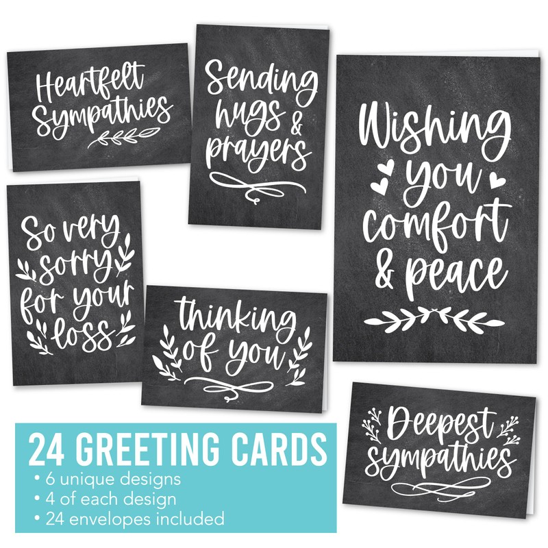 Hadley Designs Pack of Sympathy Card for Loss of Loved One - 24 Bulk Sympathy Cards with Envelopes, Sorry for Your Loss Card, Condolences Greeting Cards - Chalkboard Theme