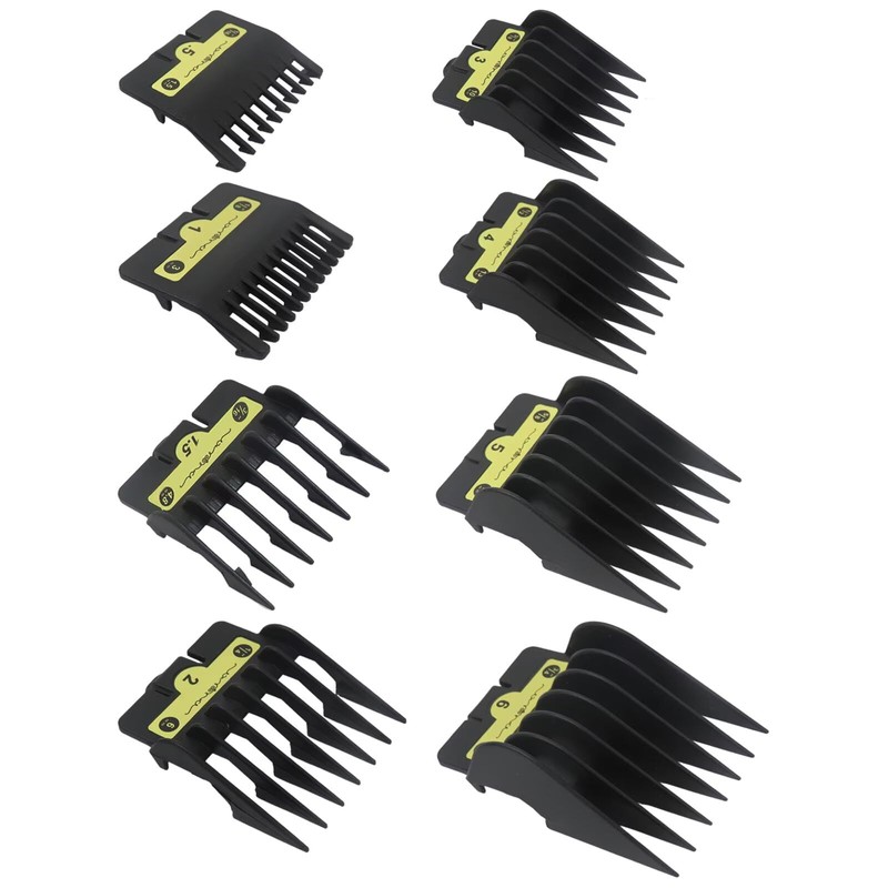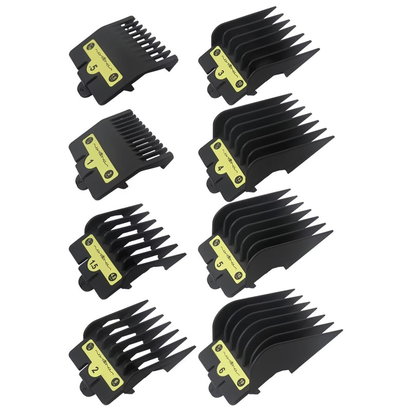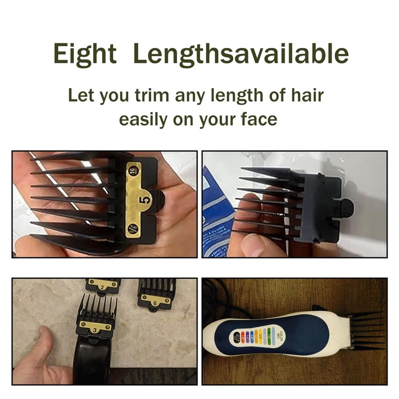 Set of 8 attachment guards (1/16, 1/8, 3/16, 1/4, 3/8, 1/2, 5/8, 3/4 inch) that enable you trim different length of hair as you want, meeting all your stylish needs.