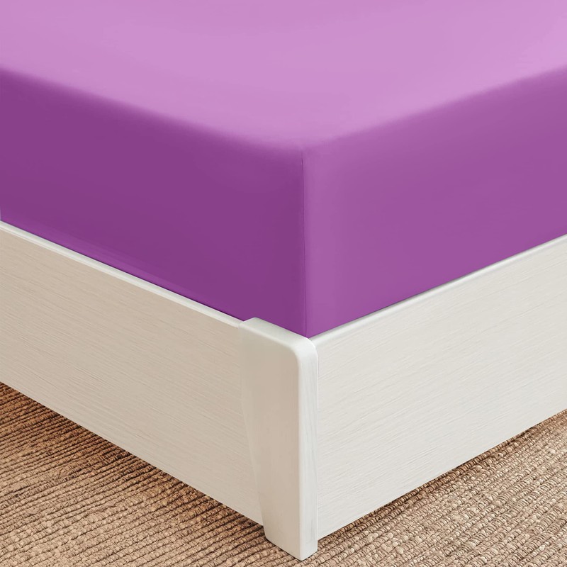 Hafaa Double Fitted Sheet – 25 cm Deep Easy Care Super Soft Brushed Microfibre Purple Double Bed sheet - Fade Resistant (137 x 191cm)