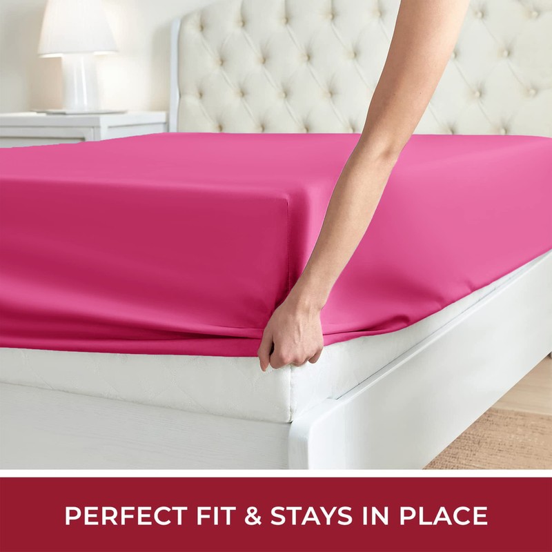 Hafaa Fitted Sheet Extra Deep Pocket Bed Sheet 16 inch 40 Cm Soft Brushed Microfiber Breathable Fitted Bed Sheets Shrinkage and Fade Resistant (Hot Pink, King)