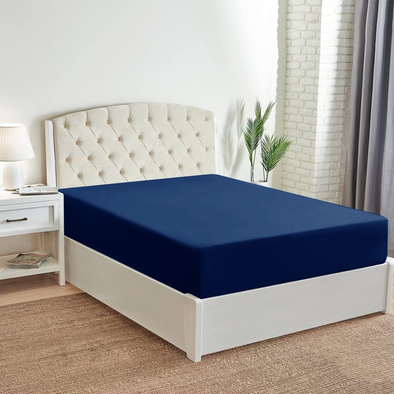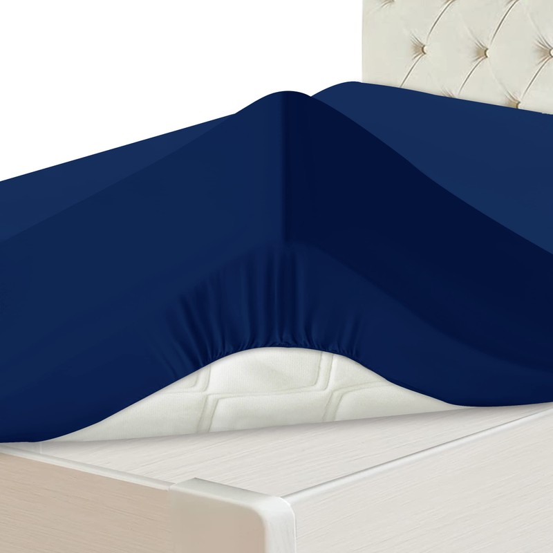 Hafaa Single Fitted Sheet – Easy Care 25 cm Deep Brushed Microfibre Elastic Navy Fitted Bed Sheets- Shrinkage and Fade Resistant (91 x 191 cm)