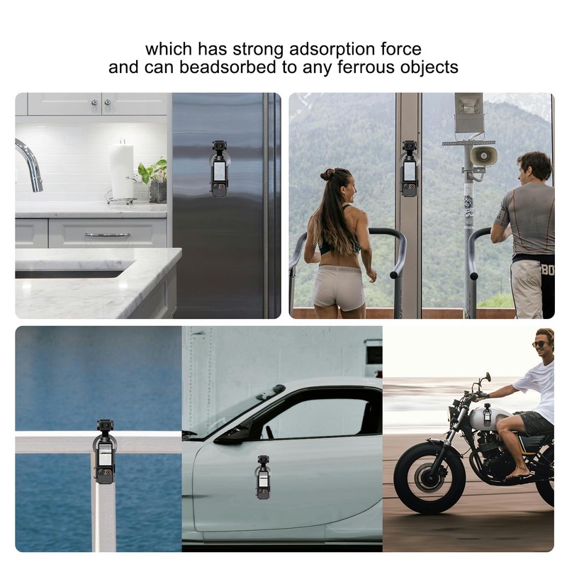 - Osmo Pocket 3 Magnetic Stand-Strong Magnetic effect, you can attach it to matal at any time, such as Cars, motorcycles,gym