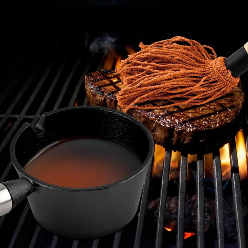 - Package includes: Our barbecue accessory set contains 1 cast iron mini cooking pot, 1 mop brush and 1 grate. It is easy to prepare a delicious grill.