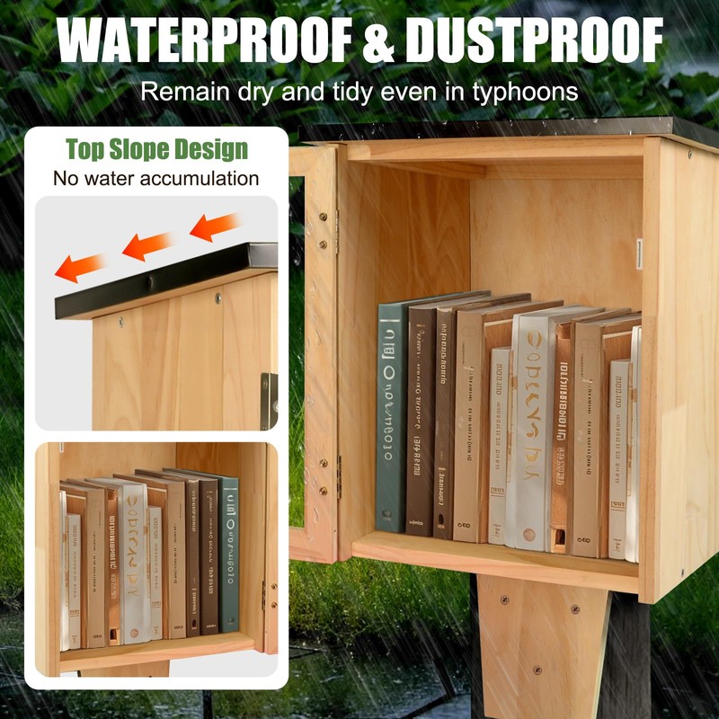 - 【Waterproof roof】The waterproof roof will keep your books dry and safe, no matter the weather. Keep your outdoor library thriving with this essential feature.