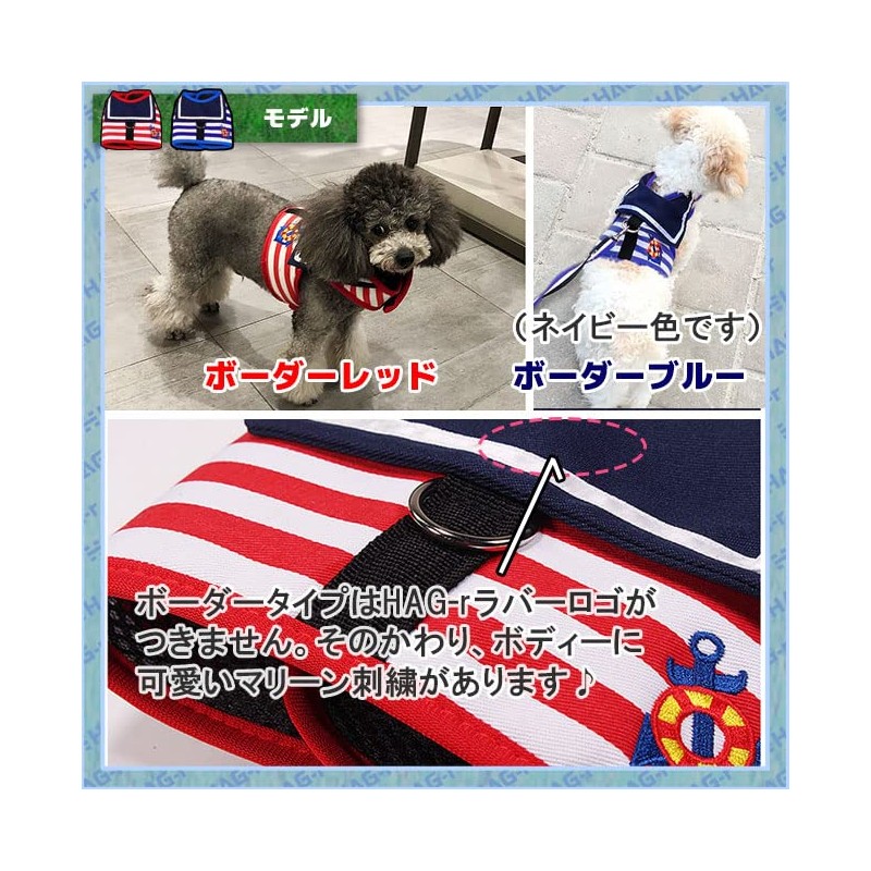 HAG-r Harness, Dog, Sailor Uniform, Stylish, Small and Medium Dogs, Cute, Marine Vest, Mesh, Clothes Lead, Double Lock (L, Border Blue)