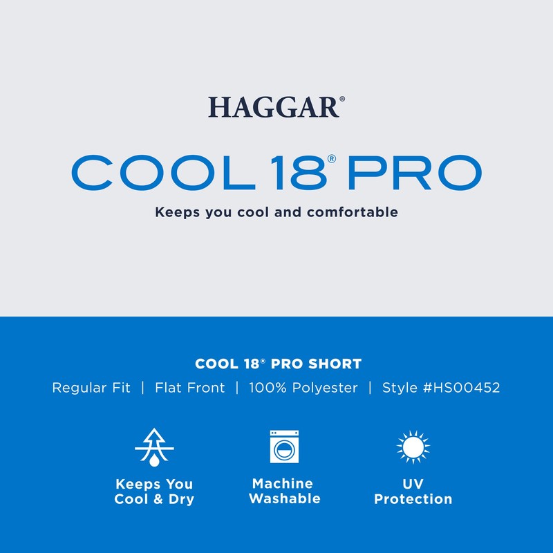 Haggar Men's Cool 18 Pro Straight Fit Flat Front 4-Way Stretch Expandable Wai...