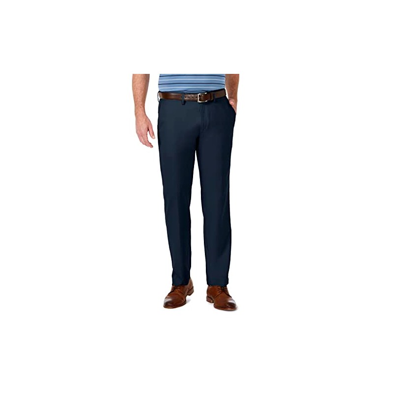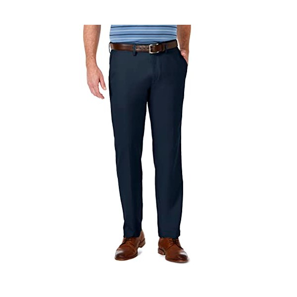 Haggar Men's Cool 18 Pro Straight Fit Flat Front Casual Pant, Navy, 36W x 30L