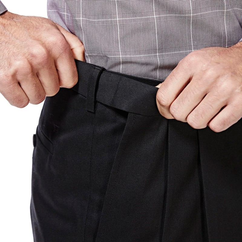 - PREMIUM NO IRON KHAKI: Featuring a hidden expandable waistband, pleat front, offseam front pockets, single welt back pockets, blind hem in a pleat front, classic fit silhouette.