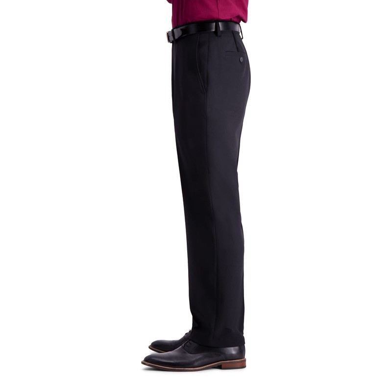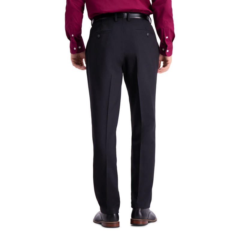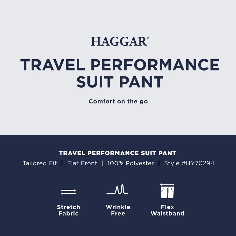 • TRAVEL PERFORMANCE: This easy care travel suit pant is designed to pack and go for a busy lifestyle! Featuring a flex waistband, hook and bar closure, off seam front pockets, single welt button through back pockets in a tailored flat front silhouette.