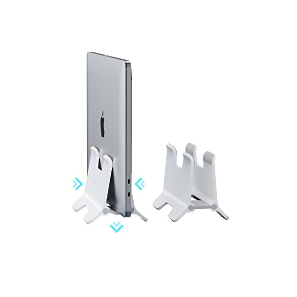 Hagibis Vertical Laptop Stand Desktop for Desk Gravity Locking Holder Dock Save Space Improves Airflow for MacBook Pro, Mac Mini, Surface, HP, Dell, Chrome Book (White ABS)