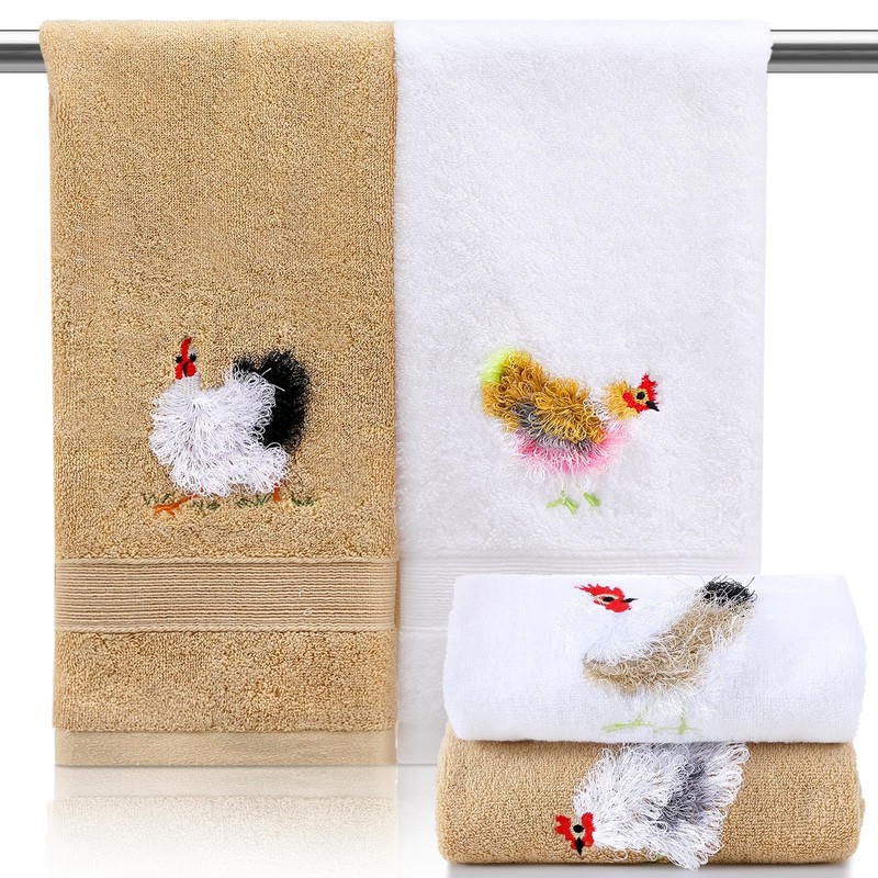- Fun Design: our rustic decorative bathroom towels are designed in fun fluffy 3D chicken pattern embroidery, the unique rooster embroidery design adds some whimsical charm to the towel; Nice for farm lovers, the embroidery craft allows you to use the towel as a beautiful decoration