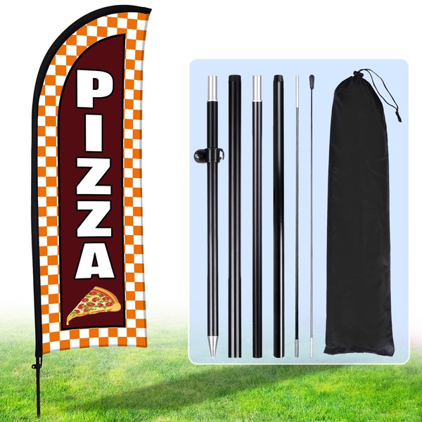- Pizza Flag Banner Kits: our pizza flag banner set includes 1 pizza banner flag, 6 flagpoles and 1 carrying bag; This flag banner set provides the necessary components for you to use, easy and convenient