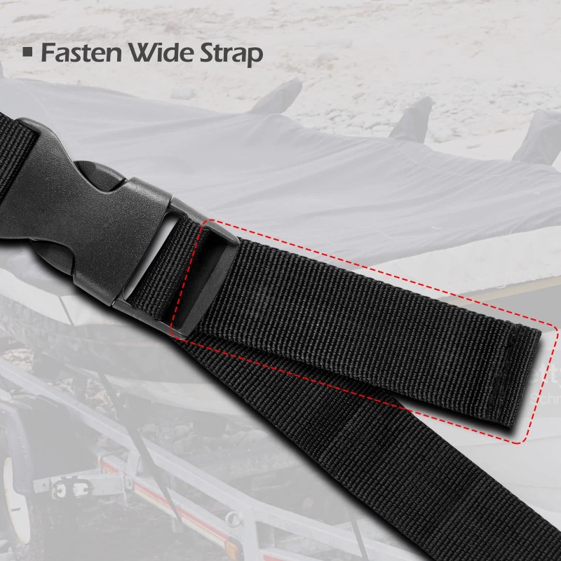 【Reliable Heavy Duty Straps】Our marine-grade tie down straps to trailer feature a durable quick release buckle and premium quality adjustable strap, which is reliable, long-lasting and tough. These adjustable straps for boat covers to trailer are more convenient and secure than standard rope. Protecting your boat from the strong wind, heavy snow and other bad weather.