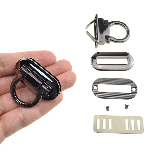 HAHIYO Flip Purse Closure Turn Locks Clip Clasps Latch Easy Install with Online Instructions Picture for Wallet Briefcase 1.65 Inch Length Metal Sturdy Gun Black 2 Sets with Washers