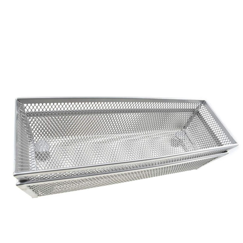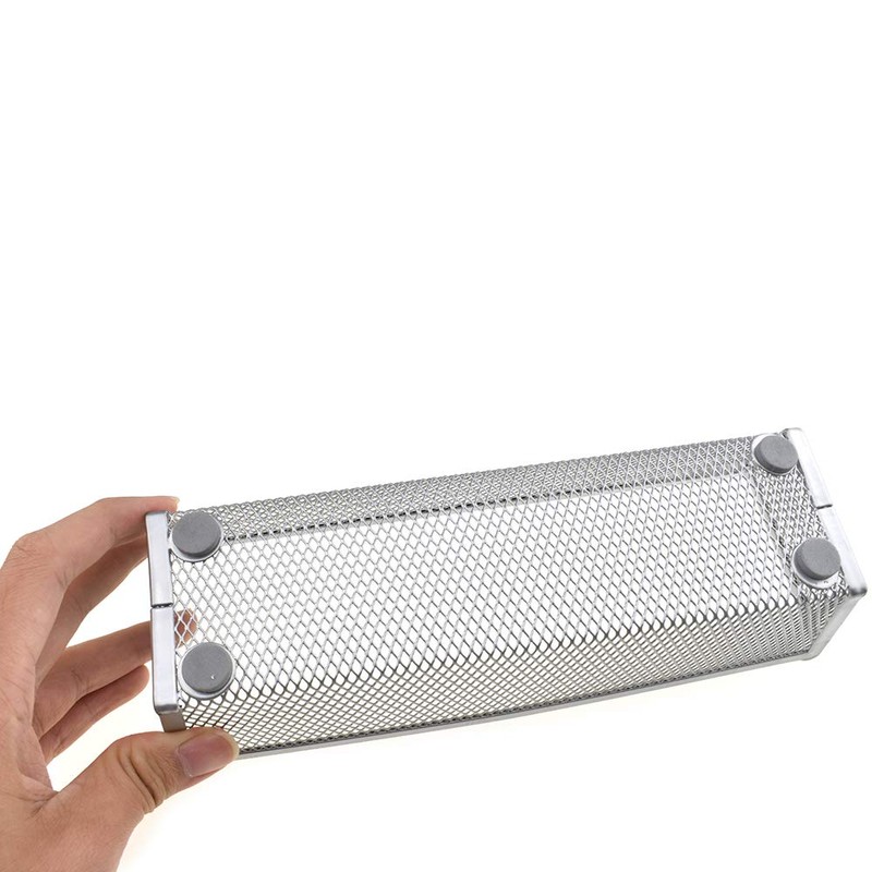 HAHIYO Stackable Mesh Tray Cup 9 x 3 x 2 inches Sturdy Container for Desk Drawer Organizer Collection for Home Office School Kitchen Soft Foam Feet No Sharp Edges 2 Pack Silver