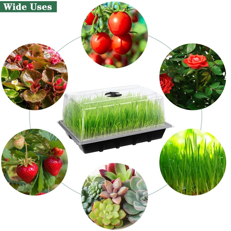 Wide range of use: our seed starter tray set are suitable for growing fruits, vegetables, flowers, potatoes, tomatoes and other plants and vegetables; you can enjoy growing process and foster a beautiful and healthy garden at home, on your balcony, on your patio, etc.