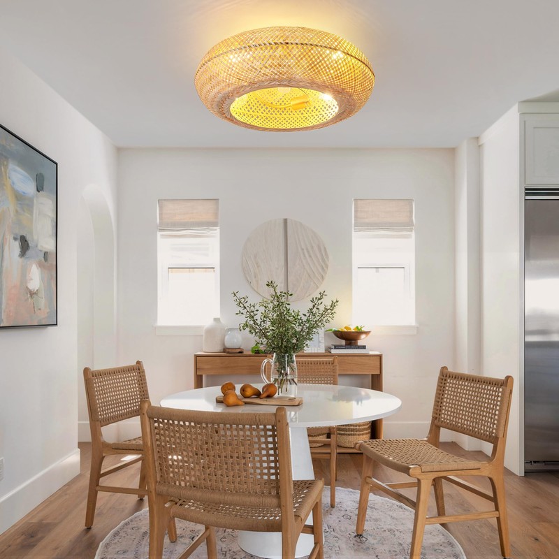 The 20-Inch Bamboo Ceiling Fan with Light seamlessly blends elegance with modern functionality, Crafted from sustainable bamboo, this fan adds a warm, organic touch to any space, Its whisper-quiet, reversible DC motor delivers powerful airflow for year-round comfort—cooling your room in the summer and circulating warm air in the winter, With six adjustable speeds, you can easily customize the airflow to your preference using the included remote control, The fan also features four E26 bulb sockets (bulbs not included), allowing you to tailor the lighting to your style and needs, Installation is simple with the provided instructions and hardware, making it a hassle-free addition to your home, Elevate your decor with the RetroGlow Bamboo Ceiling Fan with Light—a perfect combination of style, functionality, and sustainability