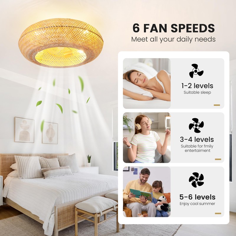 • Bamboo Cage Design - Crafted from sustainably sourced bamboo, this bamboo ceiling fan is both an high quality fan and a stylish addition to your space, The bamboo complements a variety of decor styles, making it a versatile choice for any room