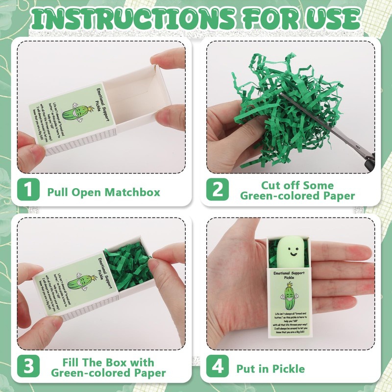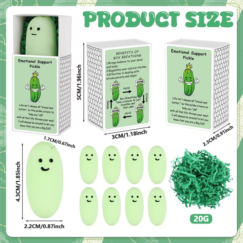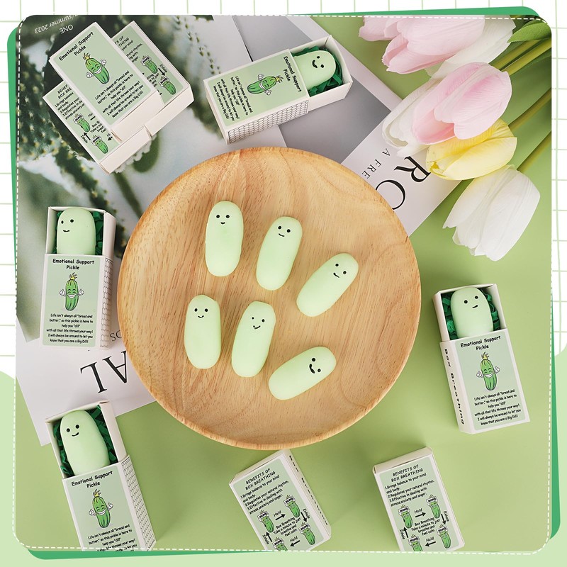 - 【Eco-Friendly Materials】The cute smiling pickles are made of TPR, a non-toxic and environmentally friendly material. The card boxes are made of sturdy kraft paper, durable and recyclable. You can use the pickle gifts to decorate your desks.