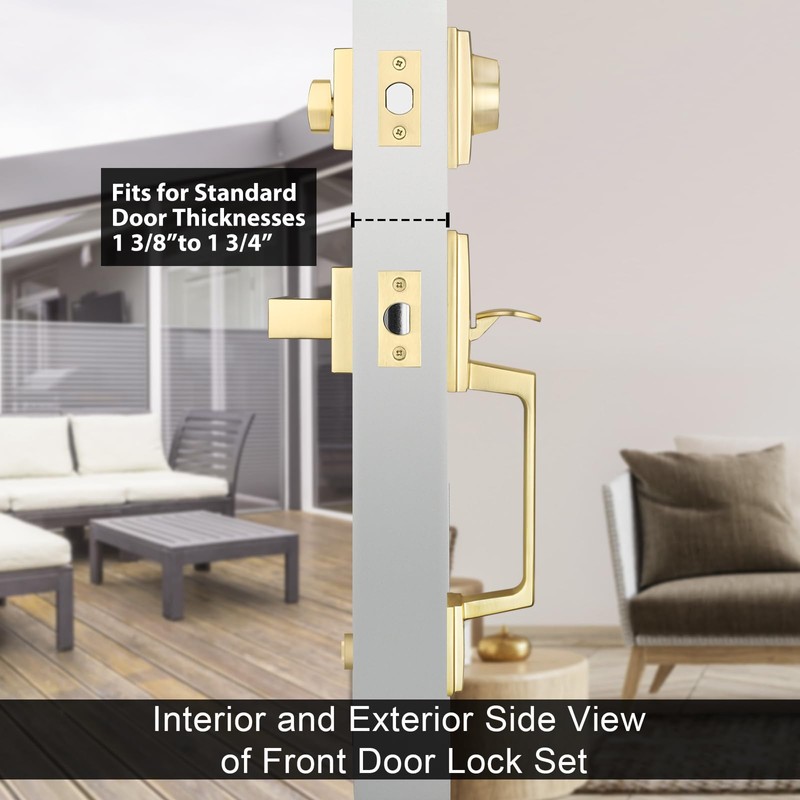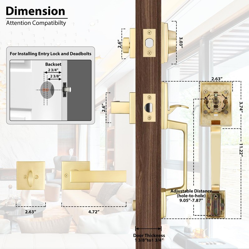 - 【Adjustable Design】Universal latches slide easily into place without tools to fit standard doors with 2-3/8" or 2-3/4" backset; fits door thickness 1-3/8" to 1-7/8"; adjustable throughbolt slides for easy installation without drilling additional holes.fit most preexisting door configurations.