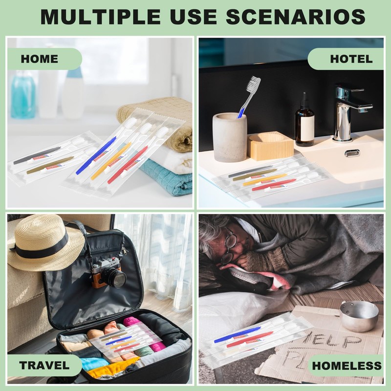 • MULTIPLE USE SCENARIOS:Office toothbrush floss kits are individually packed so they don't take up too much space. Applicable to hotels, guest travel, aviation, home, bathroom and other places, also applicable to the homeless, hotels, women's shelters, Airbnb, dental clinics, pet hospitals,OCC-Operation Christmas Child,etc