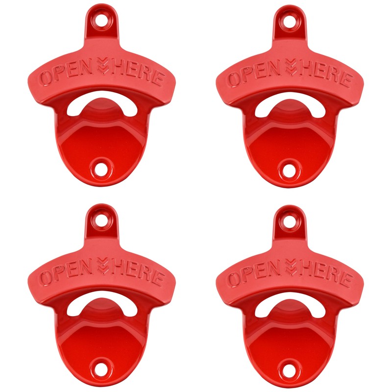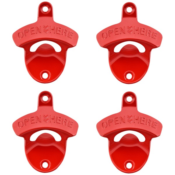HAIICEN Rustproof Wall Mount Beer Bottle Opener Red, Post Mounted Soda Cap Opener Gift (Pack of 4)