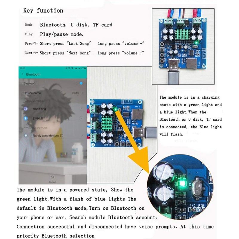 Hailege TPA3116D2 Bluetooth Amplifier Board Dual Channel 50W + 50W DC 12-24V Support TF Card U Disk Wireless Bluetooth Amplifiers
