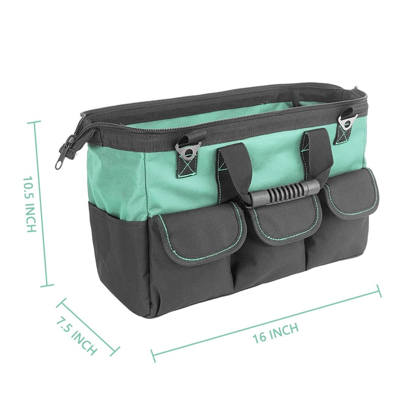 • STORAGE CAPACITY: the tool bag has 14 pockets for efficient organization of hand tools, power tools, and accessories,,while you're on the move. Product size : 16''*7.5''*10.5''.
