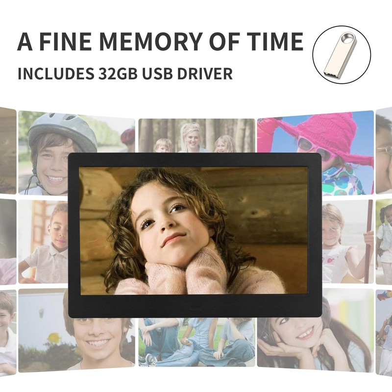 - User-Friendly Operation: Enjoy easy setup with our plug-and-play digital frame. No WiFi or app needed – simply use the included 32GB USB drive. Seamlessly display your photos and videos, complete with background music playback for an immersive multimedia experience.