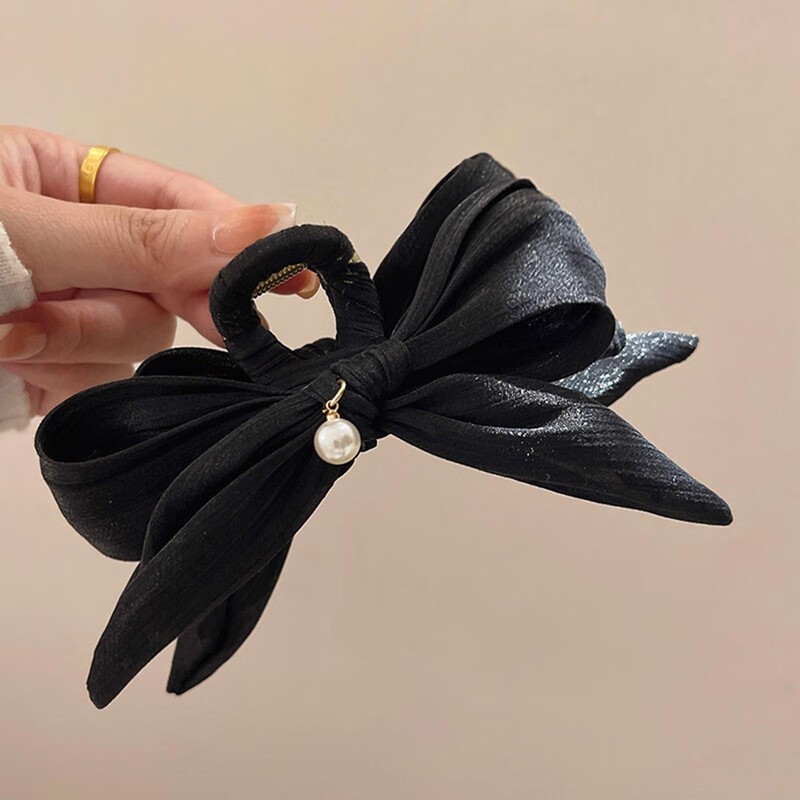 - 【French Bow Pearl Hair Accessories Design】The acrylic bows for hair black bow hair claws clips white hair barrette crab ladies fashion hair accessories hairpin claw jaw for woman is non-slip, can hold your hair firmly without damaging your scalp and no matter your hair type is thick, thin, curly, or straight hair will definitely fit our product.Suitable for elegant and delicate female friends.